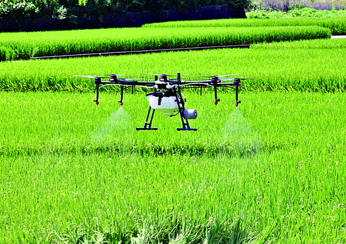広大な農地に人力で農薬を散布する作業は時間と手間がかかりますが、ドローンを活用することで、効率を向上させることができます。