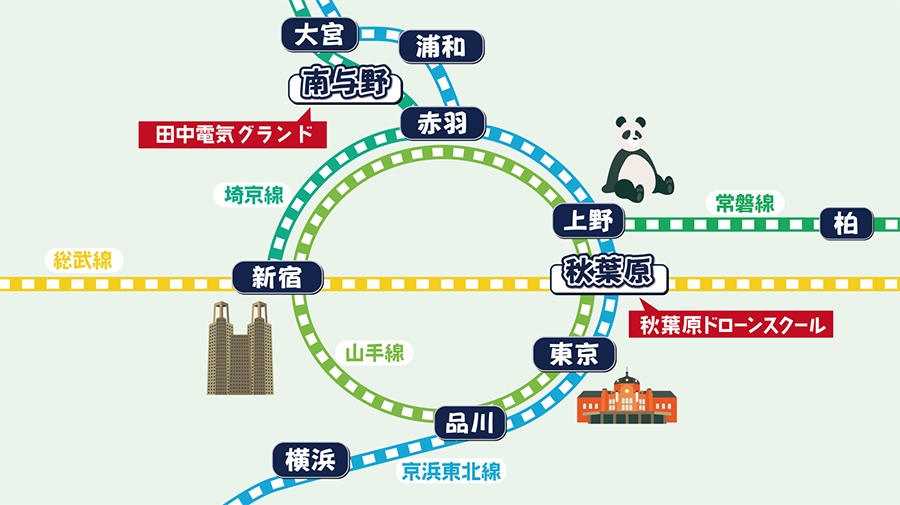 秋葉原駅から徒歩1分の秋葉原ドローンスクール本社にて受講いただけます。