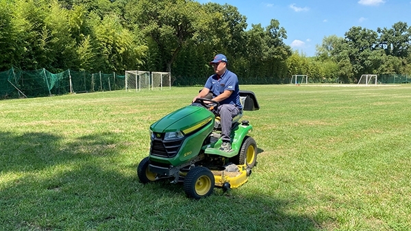 田中電気グランドが、快適に利用できるように定期的に芝刈りを行っています。